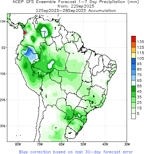 Os mapas climáticos de curto prazo apontam para a chegada de chuvas em boa parte dos principais estados produtores da faixa central do país no período entre os dias 22 e 28 de setembro, o que deve incentivar os produtores a começarem e a avançarem com os trabalhos de plantio.