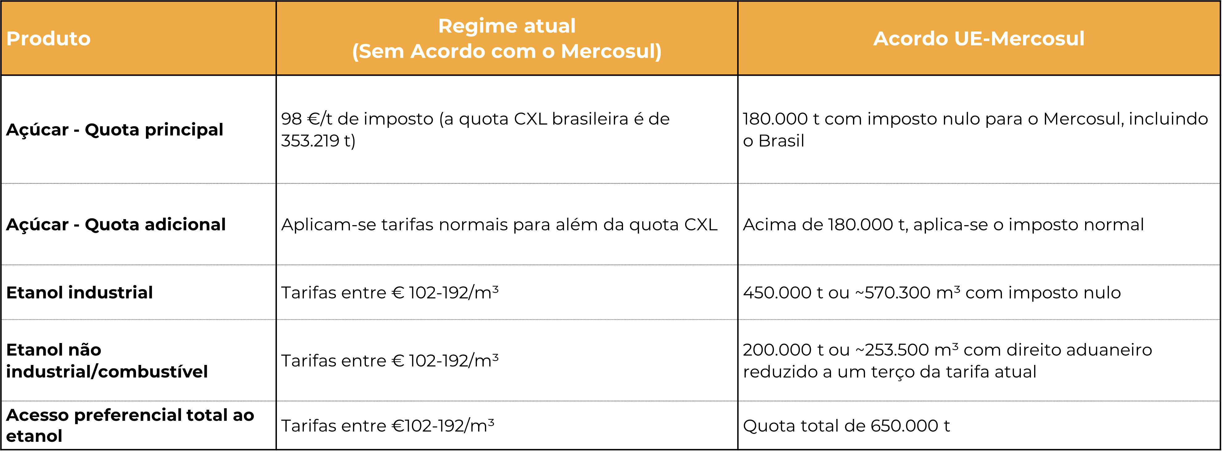 Resumo dos ajustes comerciais tendo em conta o possível Acordo do Mercosul