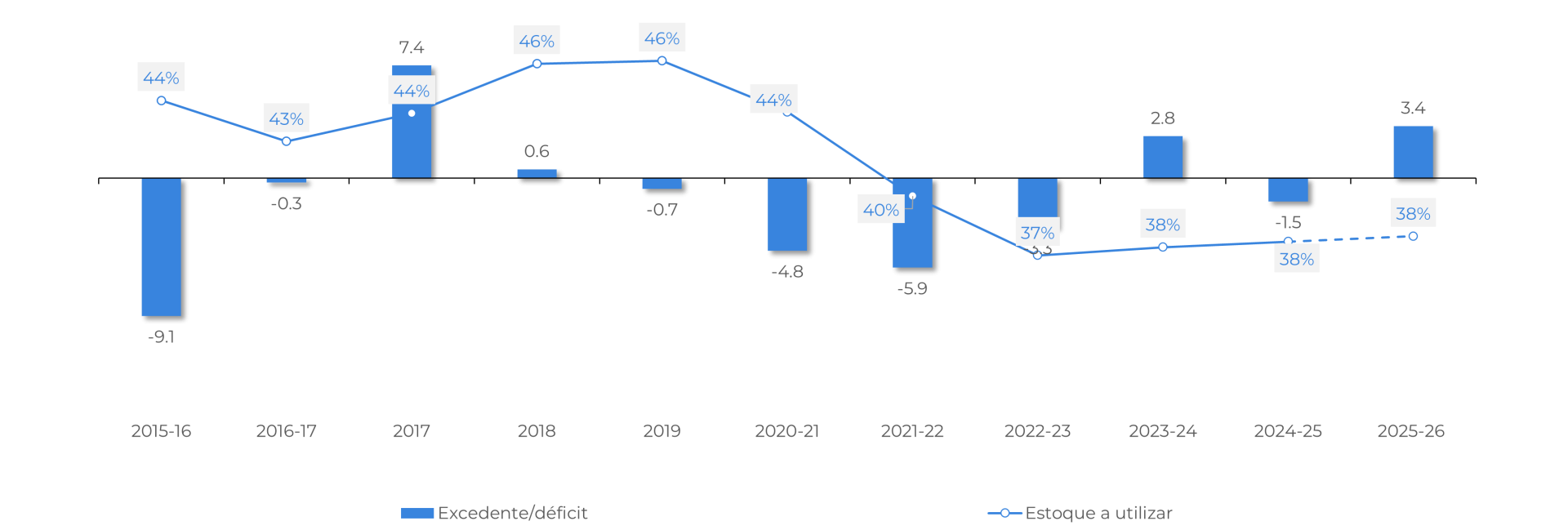 - A recuperação da oferta global (Índia, México, Tailândia, China, EUA e UE) aumenta o excedente, enquanto o acordo UE-Mercosul pode aumentar ligeiramente as pressões competitivas e expandir as oportunidades para o etanol do Brasil.