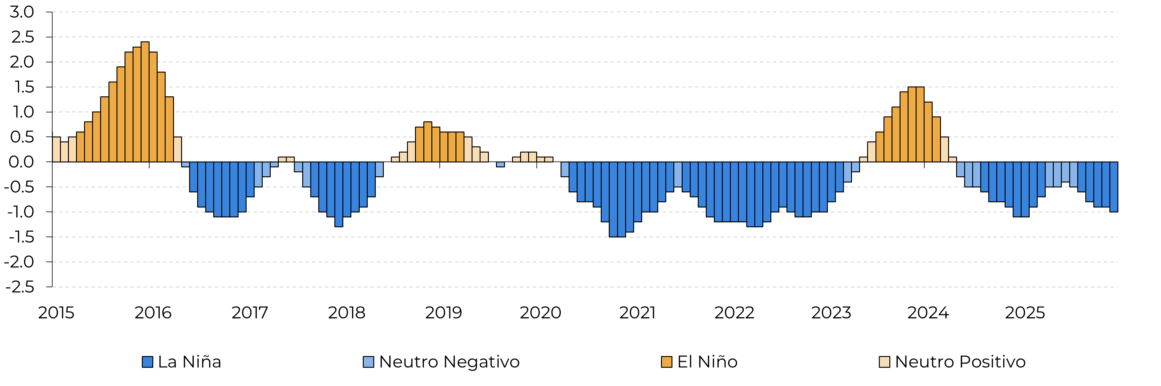 O verão da América Central (maio-outubro) também é altamente sensível à dinâmica do ENSO. Durante os anos de El Niño, a convecção reduzida sobre o Pacífico oriental intensifica a seca do meio do verão, o que pode prejudicar o desenvolvimento da cana-de-açúcar durante o período crucial de abril a novembro. Se esse padrão se confirmar, o ciclo 26/27 poderá enfrentar um estresse considerável. Além disso, se as condições do El Niño persistirem nos meses de inverno da região (novembro-março), quando o fenômeno normalmente atinge seu pico, um clima mais seco e quente poderá prevalecer ao longo da costa do Pacífico, afetando as principais áreas de cultivo de cana na Guatemala, El Salvador, Costa Rica e Nicarágua, restringindo ainda mais a produção regional.