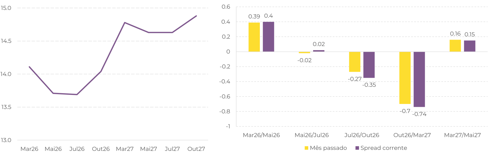 Curva futura do açúcar (esquerda) e spreads (direita) | c/lb