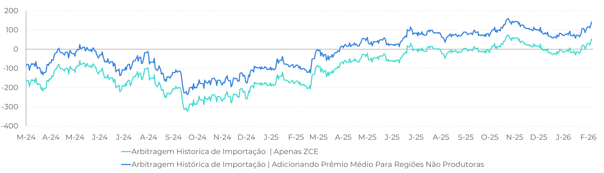 Figura 19: Estimativa histórica da arbitragem de importação chinesa (USD/t)