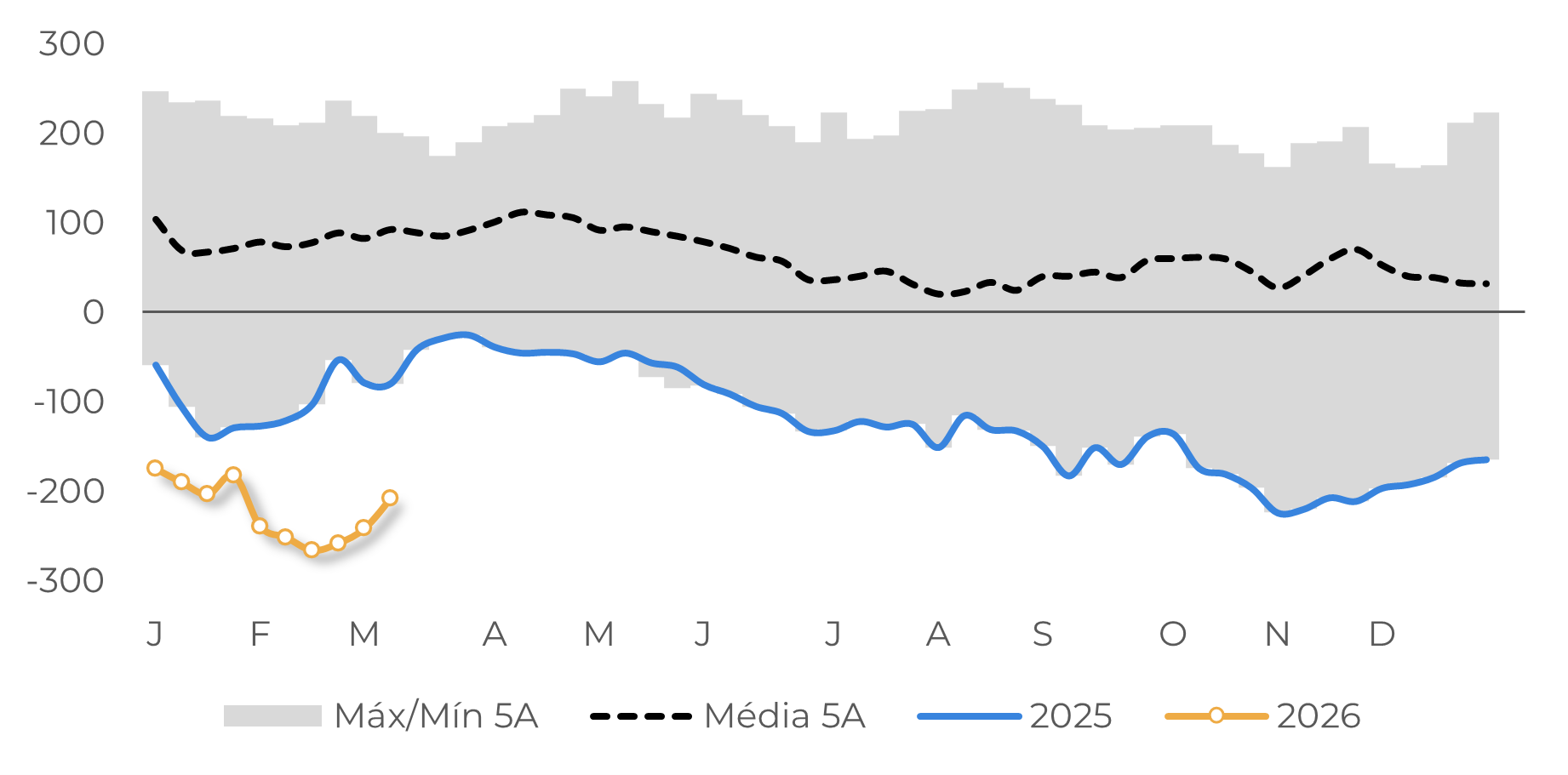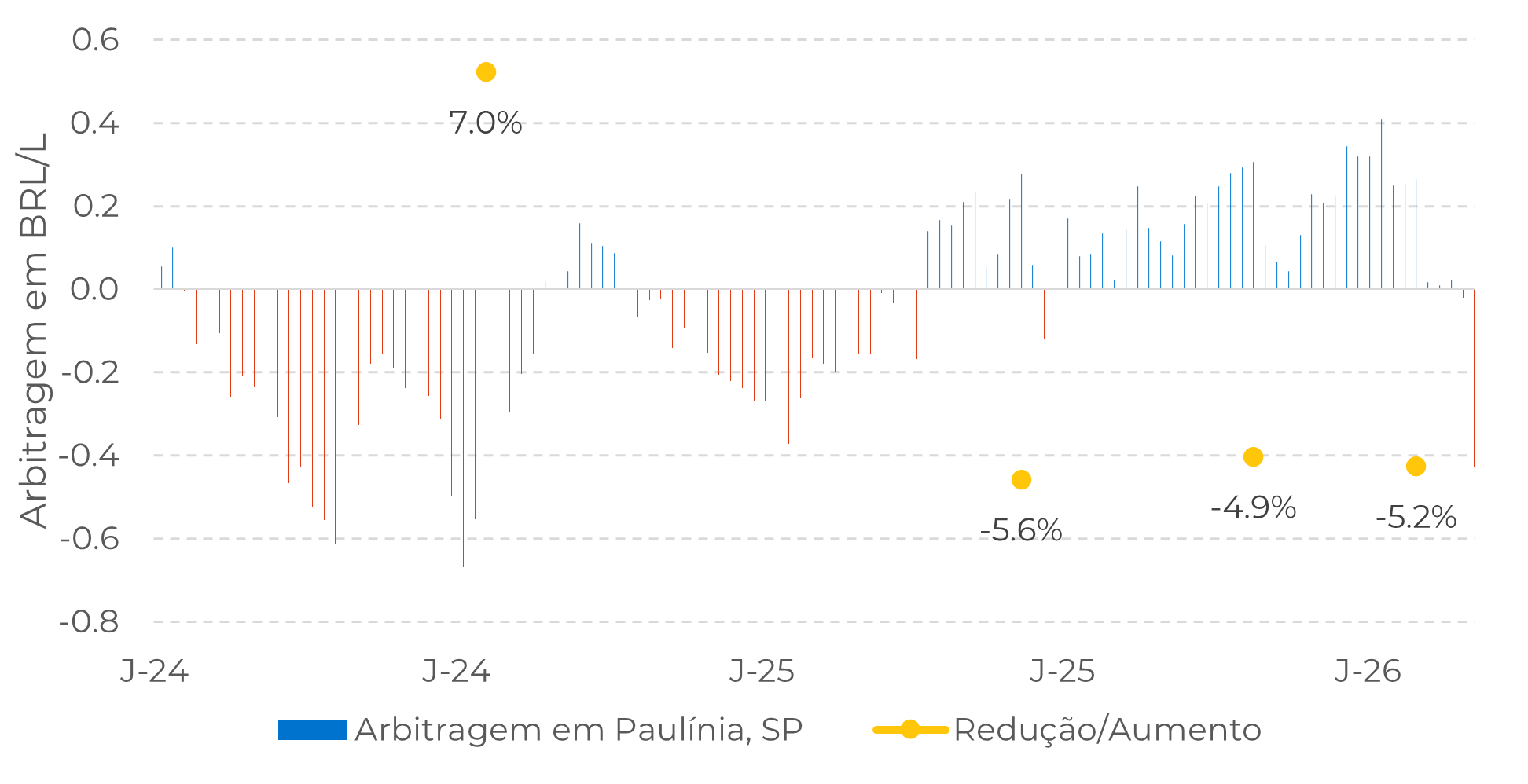 Ainda assim, considerando que 2026 é um ano eleitoral, é provável que a Petrobras adie qualquer reajuste o máximo possível. Como resultado, a duração do conflito e, consequentemente, a persistência do apoio do mercado de energia, tornam-se uma variável-chave para o mercado de açúcar, ampliando o impacto nos preços das notícias relacionadas à duração do conflito, como observado na terça-feira.