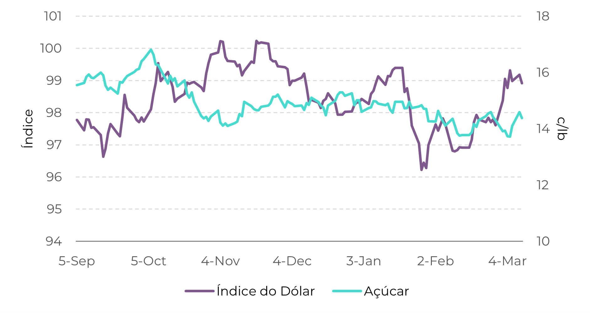Figura 1 – Índice do Dólar vs. Açúcar Bruto