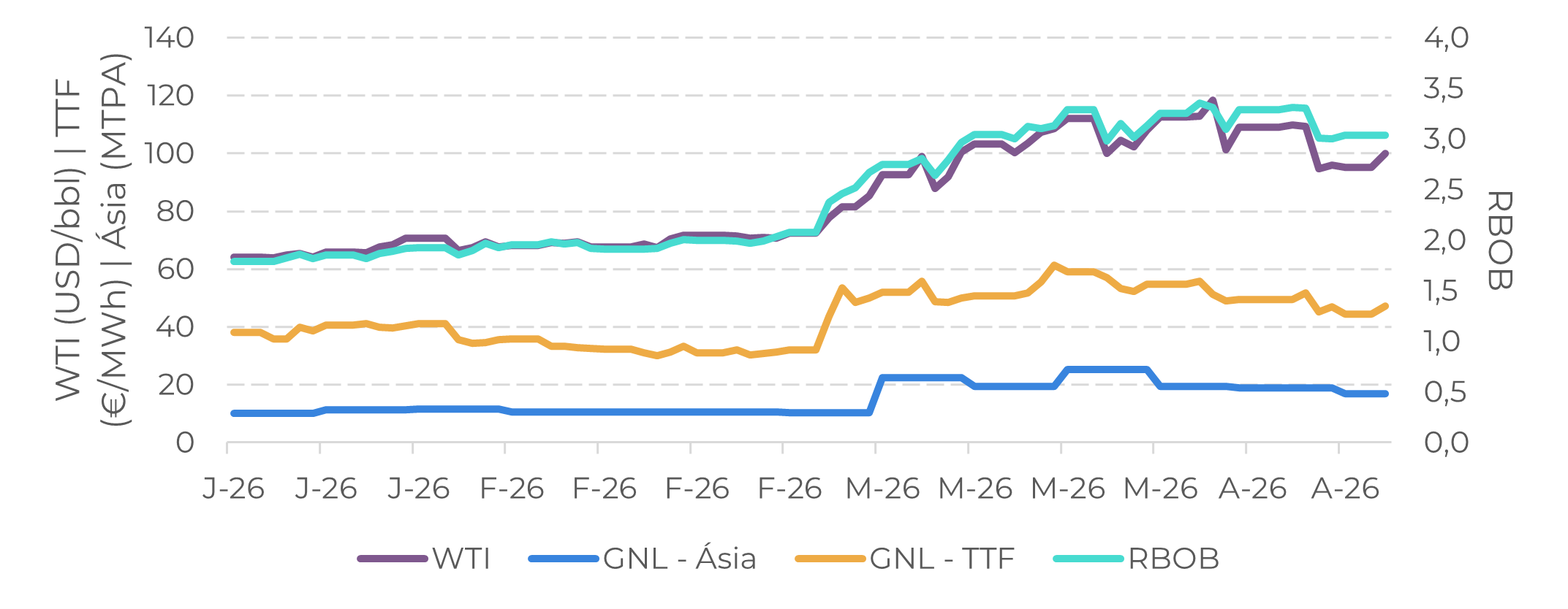 Os desenvolvimentos geopolíticos foram especialmente relevantes por seu impacto no complexo energético entre março e o início de maio. Ataques à infraestrutura energética no Oriente Médio intensificaram as preocupações com o abastecimento de longo prazo, empurrando os preços para cima e aumentando os riscos inflacionários para economias dependentes. Para o mercado de açúcar, isso se traduziu em um suporte de curta duração, impulsionado pelas expectativas de um repasse total dos custos pela Petrobras, que é importadora líquida de gasolina.