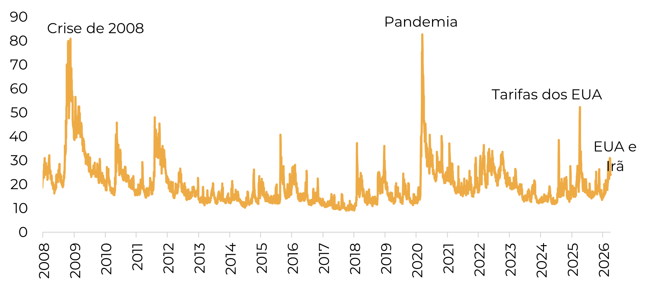 Índice VIX: +12,9 em 2 de janeiro vs. 6 de abril