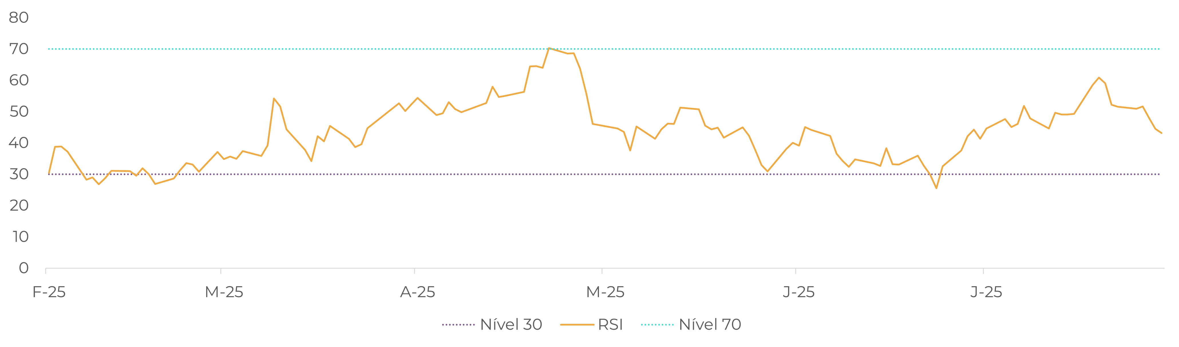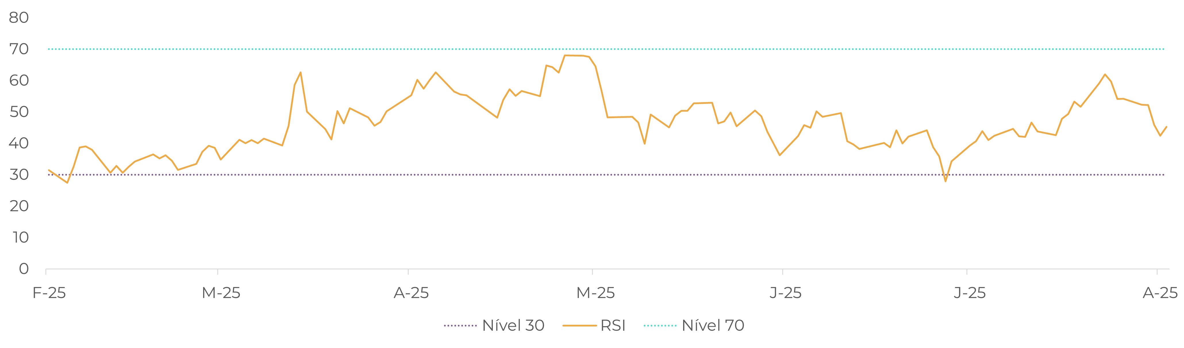 O mercado do cacau reforçou seu comportamento volátil nos últimos dias. No dia 11 de agosto, o contrato de dezembro chegou a atingir USD 8.823/t em Nova York e GBP 5.920/t em Londres ao longo da sessão, movimento que levou o RSI a se aproximar da zona de sobrecompra, a um nível não visto desde maio.
