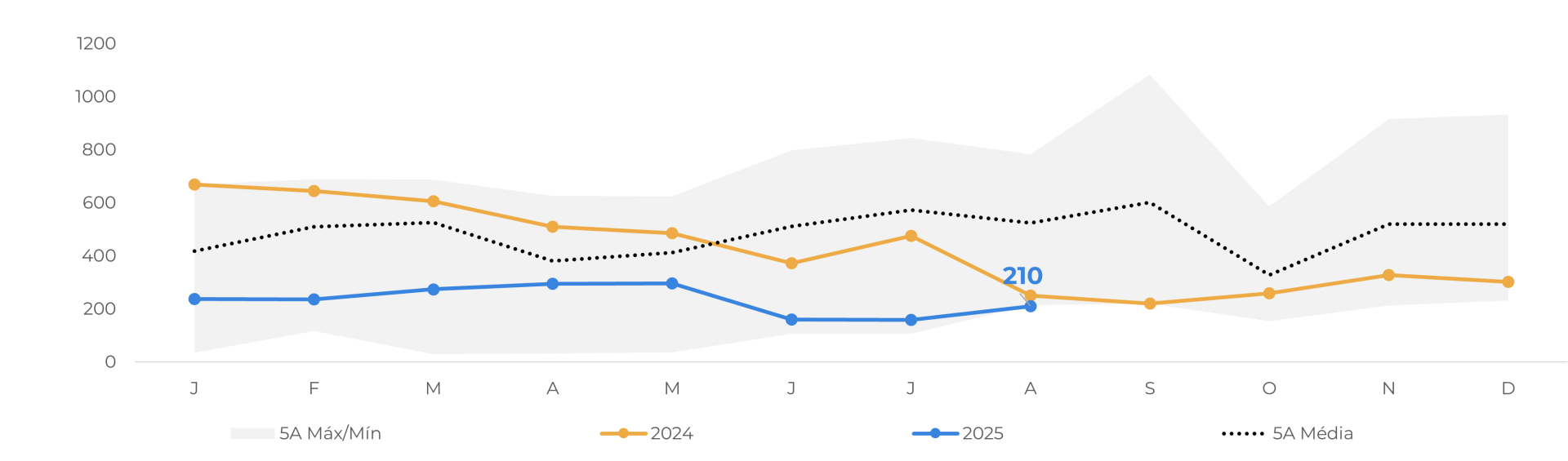 Entretanto, após o rali, o contrato passou por um movimento de correção e encerrou a semana de 22 de agosto cotado a USD 7.781/t em Nova York e GBP 5.320/t em Londres, acumulando quedas semanais de 6,0% e 4,2%, respectivamente. O movimento também refletiu fatores como sinais de melhora na condição climática na África Ocidental e a possibilidade de acordo entre EUA e Equador.