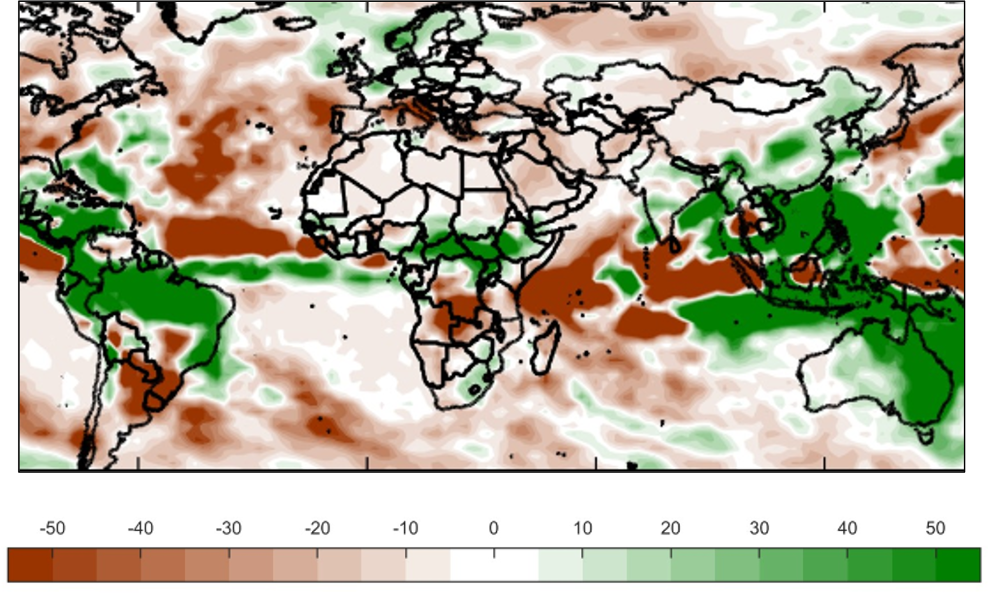 Anomalias na precipitação de setembro a novembro causadas pelo fenômeno La Niña (mm)