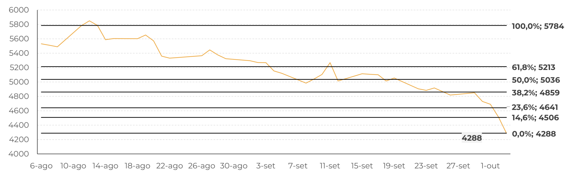 - Os contratos de cacau recuaram mais de 10% na semana até 3 de outubro, após atingirem o menor patamar em um ano, influenciados pela pressão de oferta e fatores técnicos.