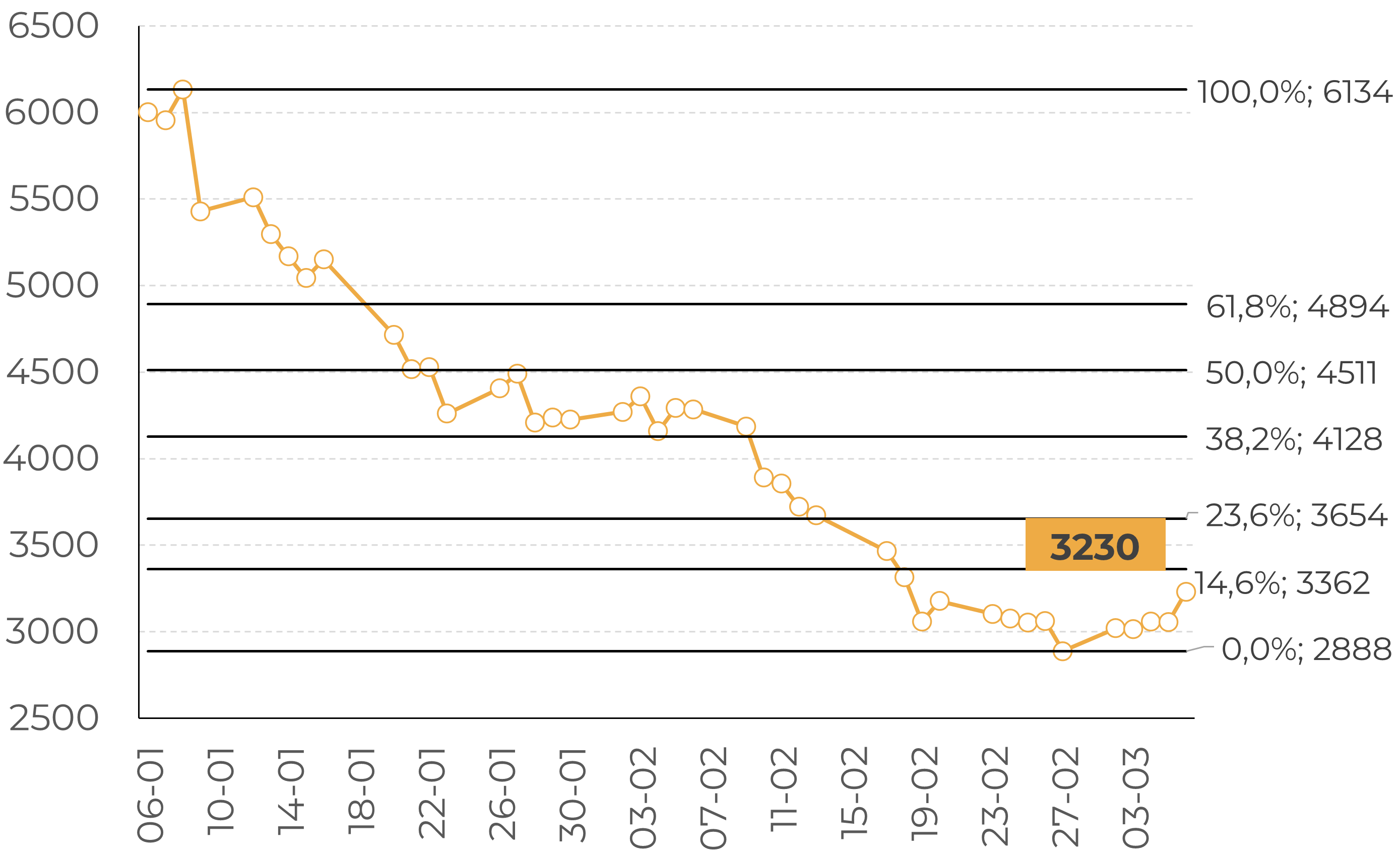 Do ponto de vista técnico, o mercado continua refletindo um viés baixista. O RSI em ambos os mercados, Nova York e Londres, permanece próximo ao território de sobrevenda, o que pode abrir espaço para ajustes de curto prazo, incluindo realização de lucros e cobertura de posições vendidas por parte dos fundos. Esse movimento pode ter contribuído para a recuperação observada ao longo da semana. Além disso, a recente escalada do conflito no Oriente Médio, que impacta o cenário macroeconômico e o mercado global de commodities, também pode ter contribuído para o comportamento das cotações. Os impactos no mercado de cacau, como custo de produção, frete, logística e fluxos comerciais serão abordados na próxima análise.