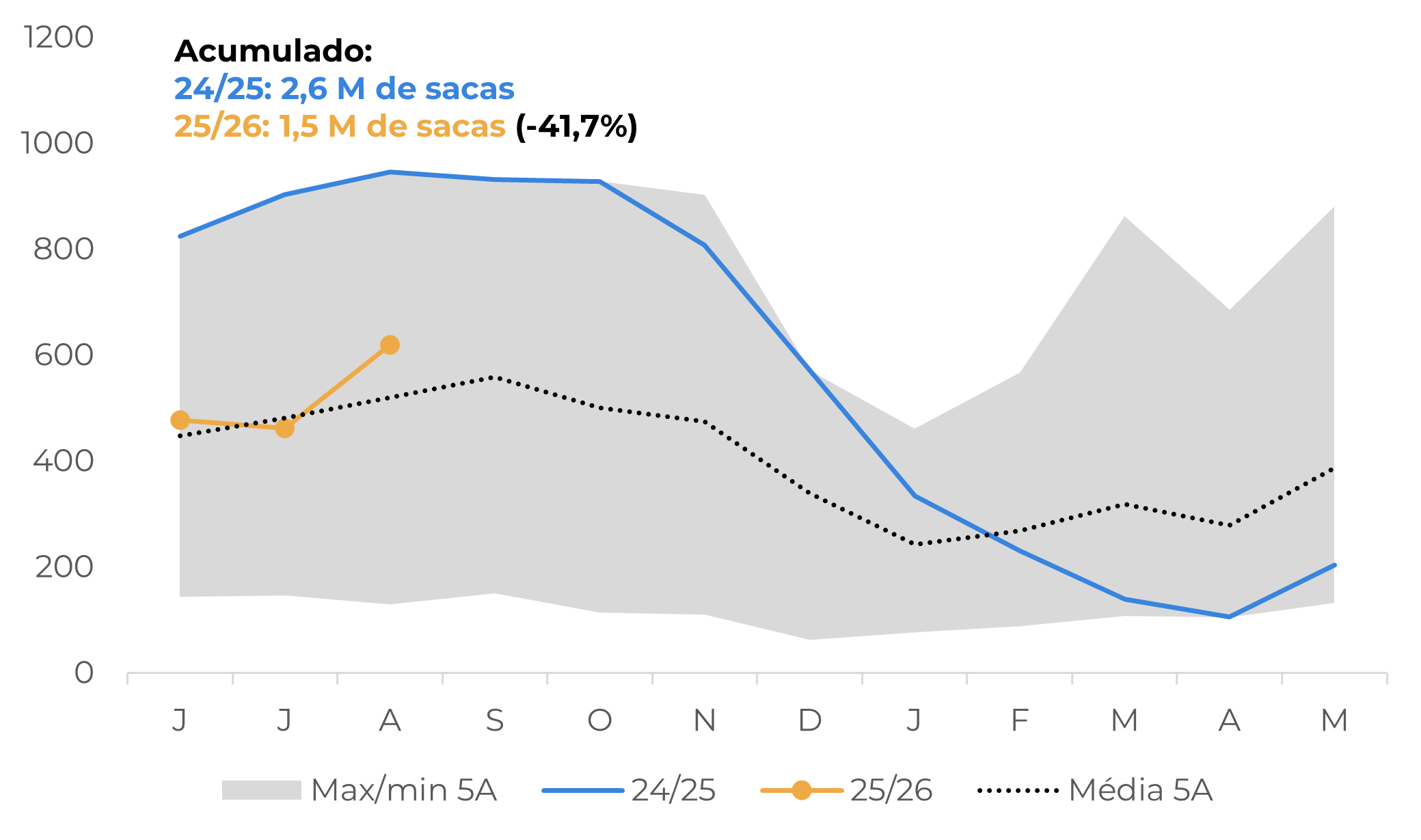 dos EUA sobre o grão brasileiro, os efeitos das tarifas ainda estão refletindo