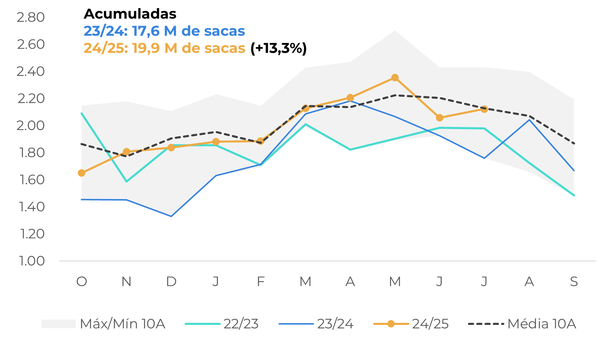 24/25, devido aos preços mais altos, mas com a produção abaixo do esperado no