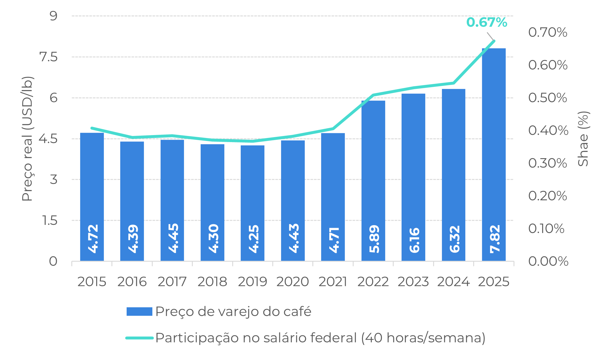 Embora o café represente uma pequena parte dos salários (com base no salário