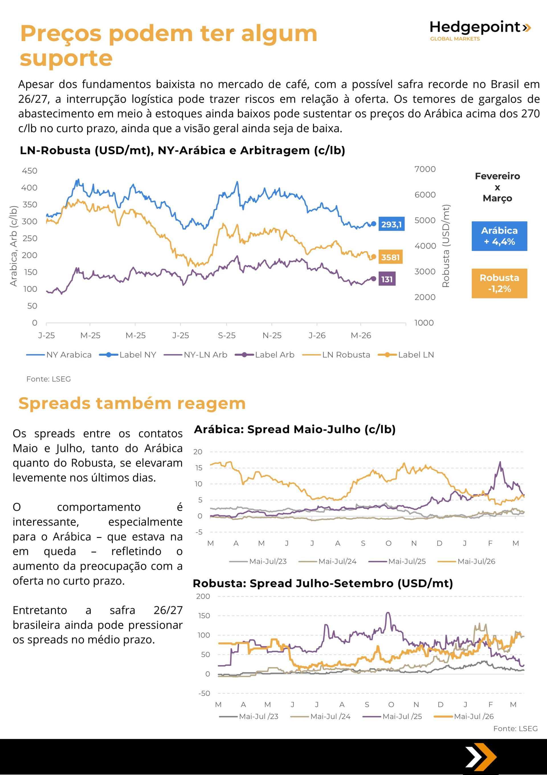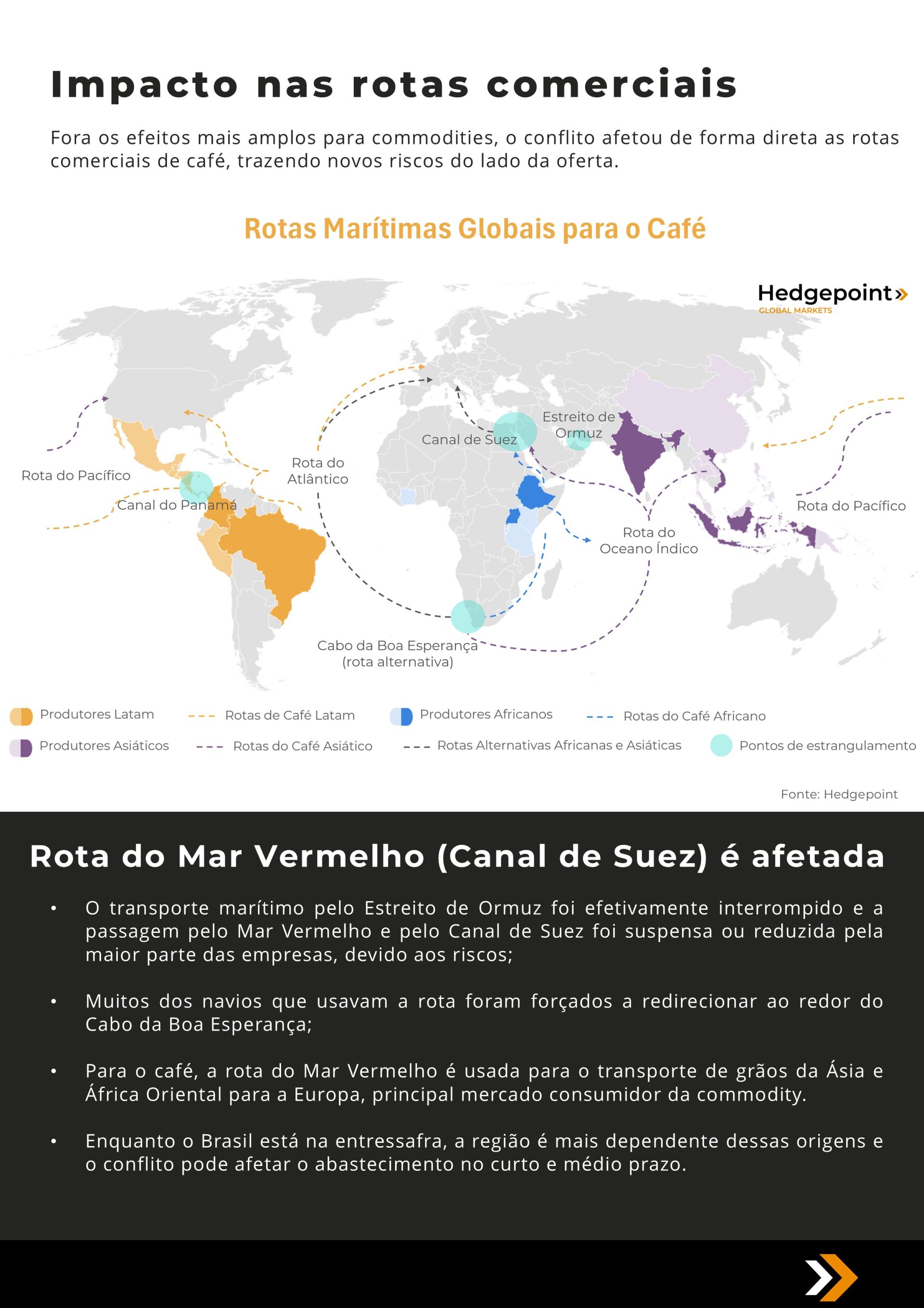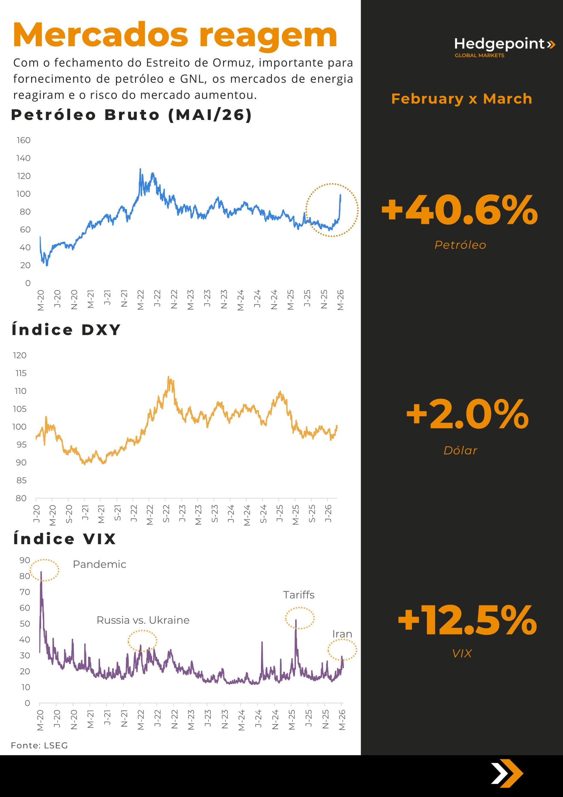 Este documento foi preparado pela Hedgepoint Schweiz AG e suas afiliadas (“Hedgepoint”) exclusivamente para fins informativos e instrutivos, sem a intenção de criar obrigações ou compromissos com terceiros. Não se destina a promover ou solicitar uma oferta de venda ou compra de quaisquer valores mobiliários, commodity interests ou produtos de investimento.A Hedgepoint e suas associadas renunciam expressamente a qualquer responsabilidade pelo uso das informações contidas neste documento que resulte, direta ou indiretamente, em qualquer tipo de dano. As informações são obtidas de fontes que acreditamos serem confiáveis, mas não garantimos a atualidade ou precisão dessas informações. O trading de commodity interests, como futuros, opções e swaps, envolve um risco substancial de perda e pode não ser adequado para todos os investidores. Você deve considerar cuidadosamente se esse tipo de negociação é adequado para você, levando em conta sua condição financeira. O desempenho passado não é necessariamente indicativo de resultados futuros. Os clientes devem confiar em seu próprio julgamento independente e/ou consultar seus consultores antes de realizar qualquer transação. A Hedgepoint não fornece consultoria jurídica, tributária ou contábil, sendo de sua responsabilidade buscar essas orientações separadamente. A Hedgepoint Schweiz AG está organizada, constituída e existente sob as leis da Suíça, é afiliada à ARIF, a Associação Romande des Intermédiaires Financiers, que é uma Organização de Autorregulação autorizada pela FINMA. A Hedgepoint Commodities LLC está organizada, constituída e existente sob as leis dos Estados Unidos, sendo autorizada e regulada pela Commodity Futures Trading Commission (CFTC) e é membro da National Futures Association (NFA), atuando como Introducing Broker e Commodity Trading Advisor. A HedgePoint Global Markets Limited é regulada pela Dubai Financial Services Authority. O conteúdo é direcionado a Clientes Profissionais e não a Clientes de Varejo. A Hedgepoint Global Markets PTE. Ltd está organizada, constituída e existente sob as leis de Singapura, isenta de obter uma licença de serviços financeiros conforme o Segundo Anexo do Securities and Futures (Licensing and Conduct of Business) Act, pela Monetary Authority of Singapore (MAS). A Hedgepoint Global Markets DTVM Ltda. é autorizada e regulada no Brasil pelo Banco Central do Brasil (BCB) e pela Comissão de Valores Mobiliários (CVM). A Hedgepoint Serviços Ltda. está organizada, constituída e existente sob as leis do Brasil. A Hedgepoint Global Markets S.A. está organizada, constituída e existente sob as leis do Uruguai. Em caso de dúvidas não resolvidas no primeiro contato com o atendimento ao cliente (client.services@hedgepointglobal.com), entre em contato com o canal de ouvidoria interna (ombudsman@hedgepointglobal.com – global ou ouvidoria@hedgepointglobal.com – apenas Brasil) ou ligue para 0800-8788408 (apenas Brasil). Integridade, ética e transparência são valores que guiam nossa cultura. Para fortalecer ainda mais nossas práticas, a Hedgepoint possui um canal de denúncias para colaboradores e terceiros via e-mail ethicline@hedgepointglobal.com ou pelo formulário Ethic Line – Hedgepoint Global Markets. “HedgePoint” e o logotipo “HedgePoint” são marcas de uso exclusivo da HedgePoint e/ou de suas afiliadas. O uso ou reprodução é proibido, a menos que expressamente autorizado pela HedgePoint. Além disso, o uso de outras marcas neste documento foi autorizado apenas para fins de identificação. Isso, portanto, não implica quaisquer direitos da HedgePoint sobre essas marcas ou implica endosso, associação ou aprovação pelos proprietários dessas marcas com a HedgePoint ou suas afiliadas.