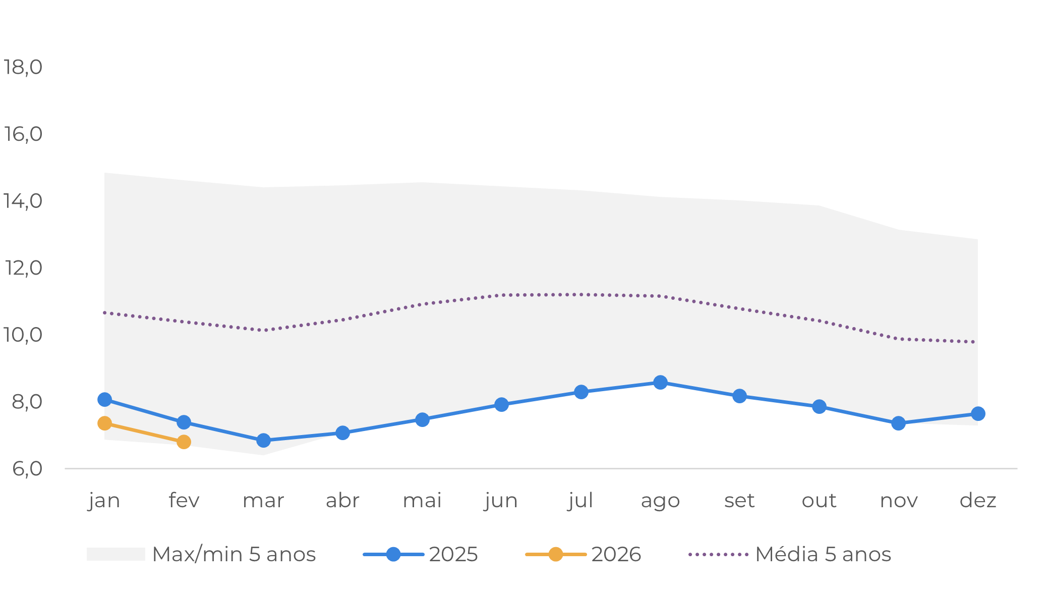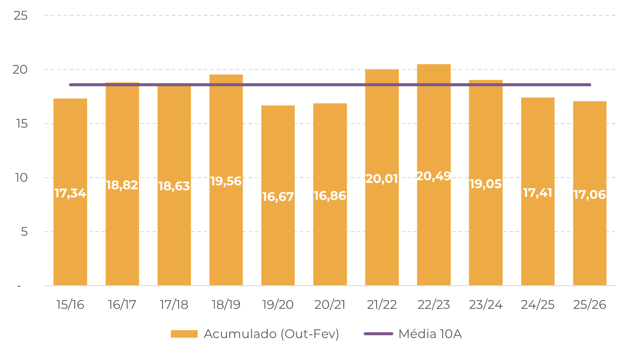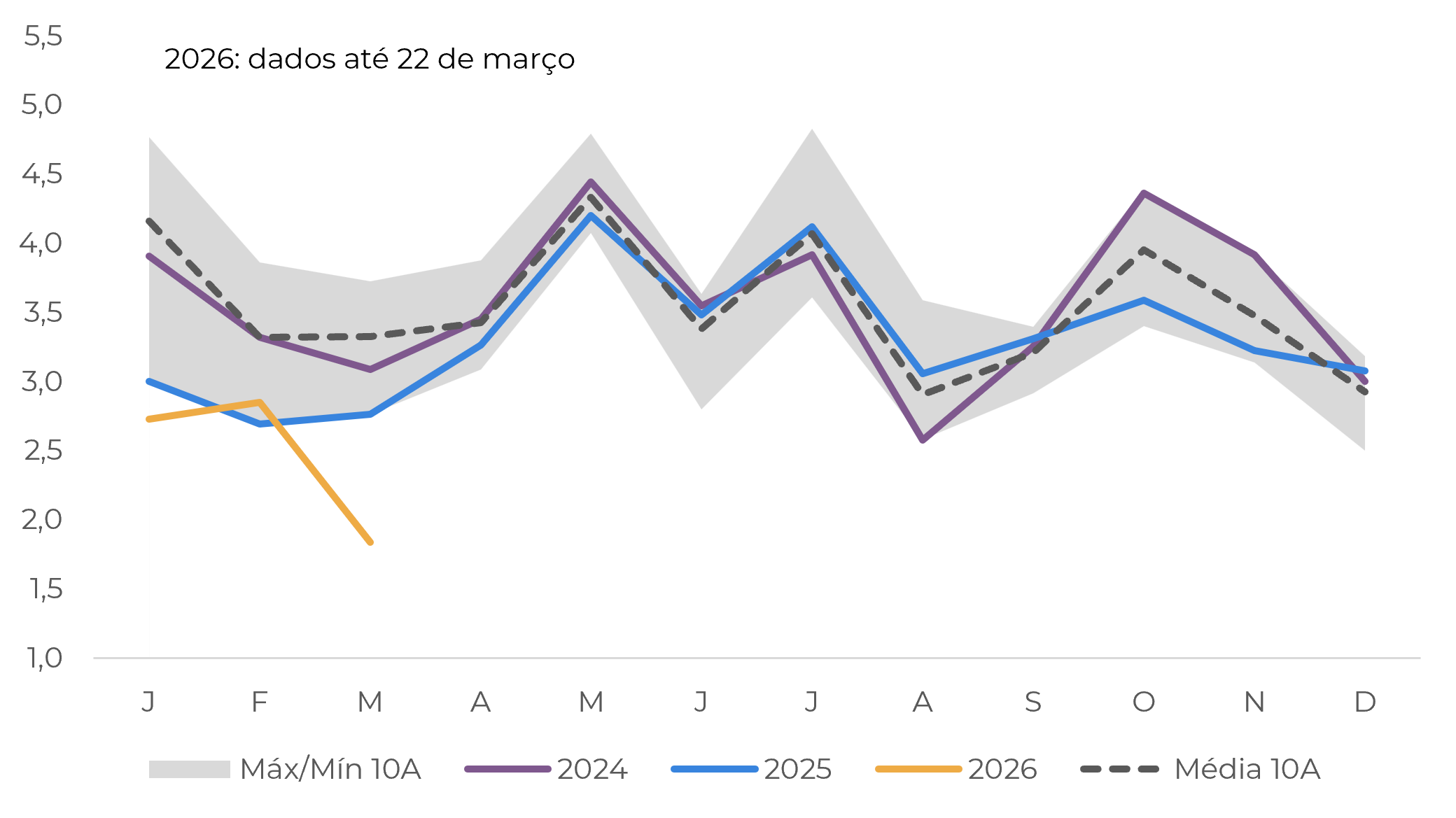 Há, no entanto, algum potencial de alta no lado da demanda europeia no final deste ano, já que o Brasil caminha para uma safra 26/27 recorde, o que poderia ajudar a aliviar os preços. Esse resultado, no entanto, dependerá em grande parte da disposição dos agricultores em vender e do ritmo em que a oferta chegar ao mercado.