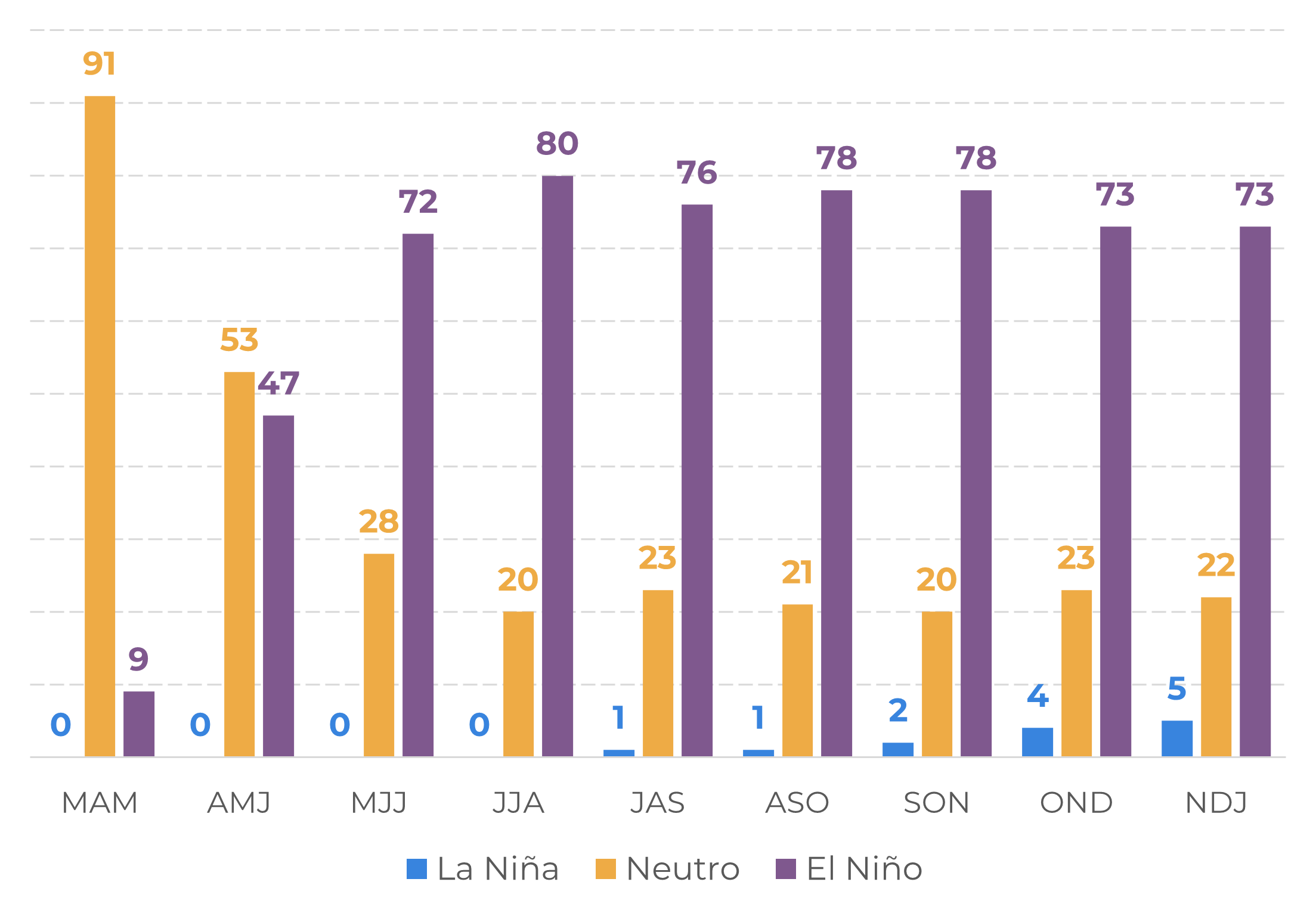 • Sudeste Asiático: pode aumentar a atividade de furacões no Pacífico e trazer tempestades para o Vietnã e parte da Indonésia, mas também pode causar seca no sudeste do país.
