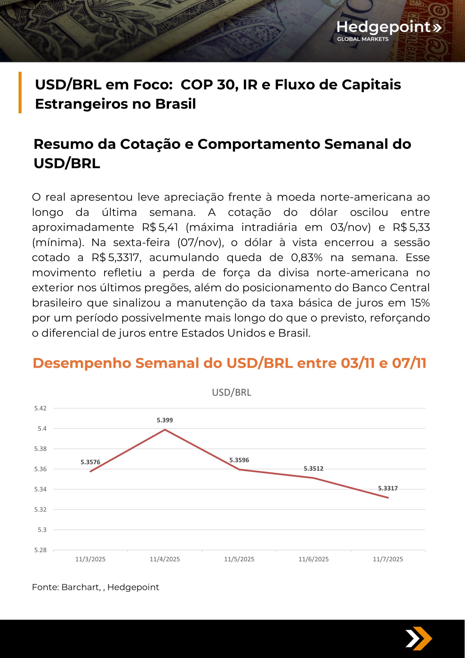 USD/BRL em Foco: COP 30, IR e Fluxo de Capitais Estrangeiros no Brasil