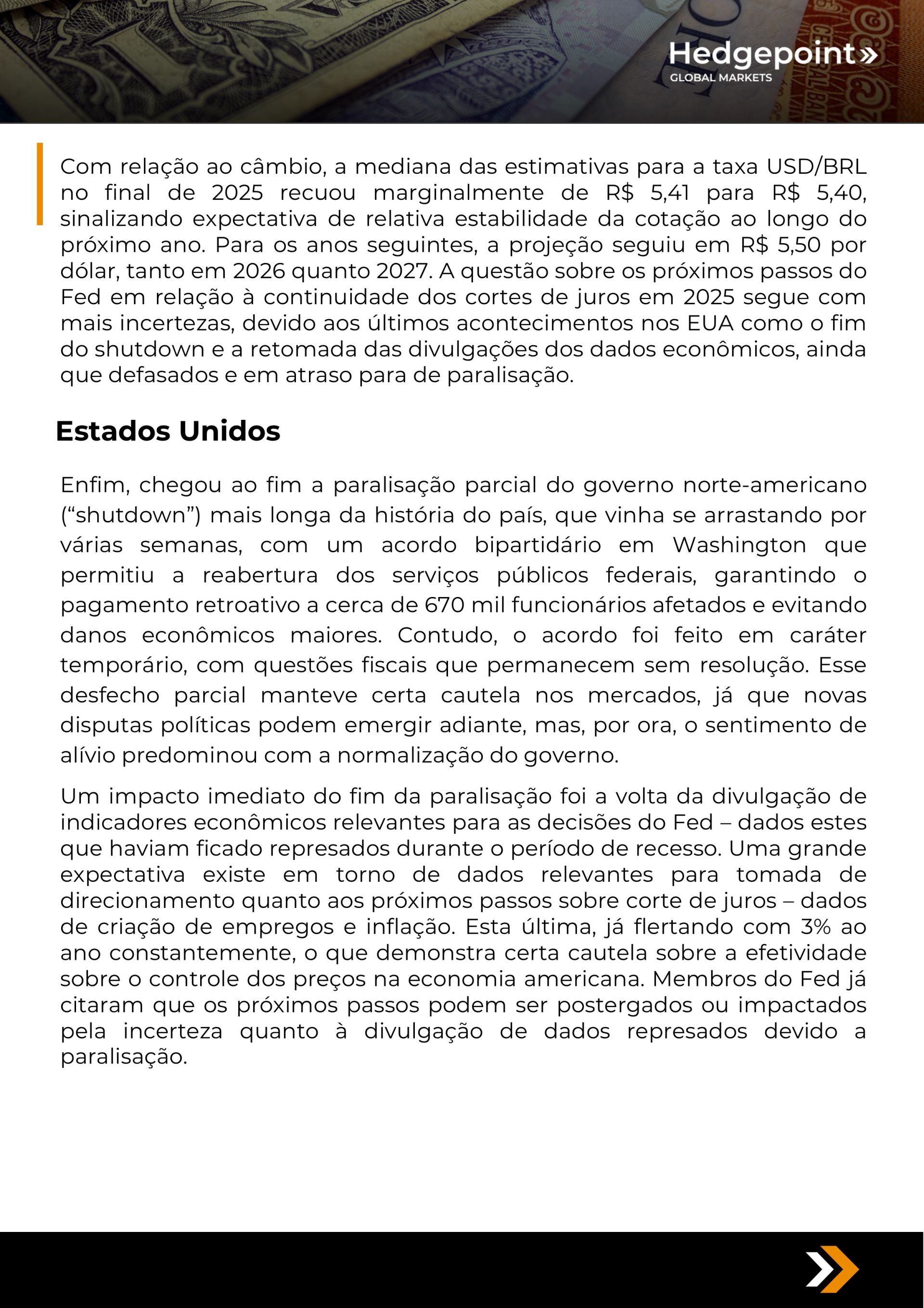 Este documento foi preparado pela Hedgepoint Schweiz AG e suas afiliadas (“Hedgepoint”) exclusivamente para fins informativos e instrutivos, sem a intenção de criar obrigações ou compromissos com terceiros. Não se destina a promover ou solicitar uma oferta de venda ou compra de quaisquer valores mobiliários, commodity interests ou produtos de investimento. A Hedgepoint e suas associadas renunciam expressamente a qualquer responsabilidade pelo uso das informações contidas neste documento que resulte, direta ou indiretamente, em qualquer tipo de dano. As informações são obtidas de fontes que acreditamos serem confiáveis, mas não garantimos a atualidade ou precisão dessas informações. O trading de commodity interests, como futuros, opções e swaps, envolve um risco substancial de perda e pode não ser adequado para todos os investidores. Você deve considerar cuidadosamente se esse tipo de negociação é adequado para você, levando em conta sua condição financeira. O desempenho passado não é necessariamente indicativo de resultados futuros. Os clientes devem confiar em seu próprio julgamento independente e/ou consultar seus consultores antes de realizar qualquer transação. A Hedgepoint não fornece consultoria jurídica, tributária ou contábil, sendo de sua responsabilidade buscar essas orientações separadamente. A Hedgepoint Schweiz AG está organizada, constituída e existente sob as leis da Suíça, é afiliada à ARIF, a Associação Romande des Intermédiaires Financiers, que é uma Organização de Autorregulação autorizada pela FINMA. A Hedgepoint Commodities LLC está organizada, constituída e existente sob as leis dos Estados Unidos, sendo autorizada e regulada pela Commodity Futures Trading Commission (CFTC) e é membro da National Futures Association (NFA), atuando como Introducing Broker e Commodity Trading Advisor. A HedgePoint Global Markets Limited é regulada pela Dubai Financial Services Authority. O conteúdo é direcionado a Clientes Profissionais e não a Clientes de Varejo. A Hedgepoint Global Markets PTE. Ltd está organizada, constituída e existente sob as leis de Singapura, isenta de obter uma licença de serviços financeiros conforme o Segundo Anexo do Securities and Futures (Licensing and Conduct of Business) Act, pela Monetary Authority of Singapore (MAS). A Hedgepoint Global Markets DTVM Ltda. é autorizada e regulada no Brasil pelo Banco Central do Brasil (BCB) e pela Comissão de Valores Mobiliários (CVM). Hedgepoint Serviços Ltda. está organizada, constituída e existente sob as leis do Brasil. A Hedgepoint Global Markets S.A. está organizada, constituída e existente sob as leis do Uruguai. Em caso de dúvidas não resolvidas no primeiro contato com o atendimento ao cliente (client.services@hedgepointglobal.com), entre em contato com o canal de ouvidoria interna (ombudsman@hedgepointglobal.com – global ou ouvidoria@hedgepointglobal.com – apenas Brasil) ou ligue para 0800-8788408 (apenas Brasil). Integridade, ética e transparência são valores que guiam nossa cultura. Para fortalecer ainda mais nossas práticas, a Hedgepoint possui um canal de denúncias para colaboradores e terceiros via e-mail ethicline@hedgepointglobal.com ou pelo formulário Ethic Line – Hedgepoint Global Markets. “HedgePoint” e o logotipo “HedgePoint” são marcas de uso exclusivo da HedgePoint e/ou de suas afiliadas. O uso ou reprodução é proibido, a menos que expressamente autorizado pela HedgePoint. Além disso, o uso de outras marcas neste documento foi autorizado apenas para fins de identificação. Isso, portanto, não implica quaisquer direitos da HedgePoint sobre essas marcas ou implica endosso, associação ou aprovação pelos proprietários dessas marcas com a HedgePoint ou suas afiliadas.